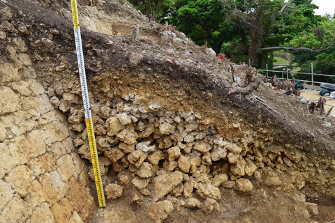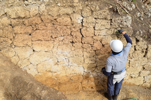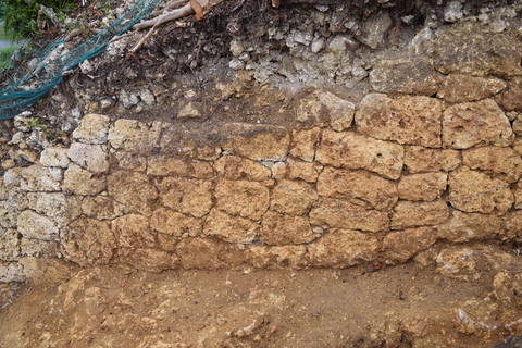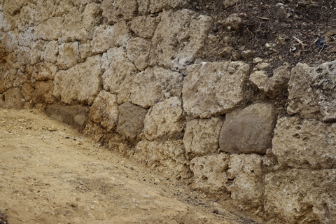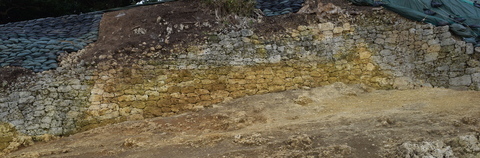 発掘してみると、石灰岩礫で城壁が埋まっている様子が確認できました。