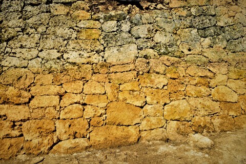 上の写真では、城壁の真下に白い土が広がっている様子がみられます。