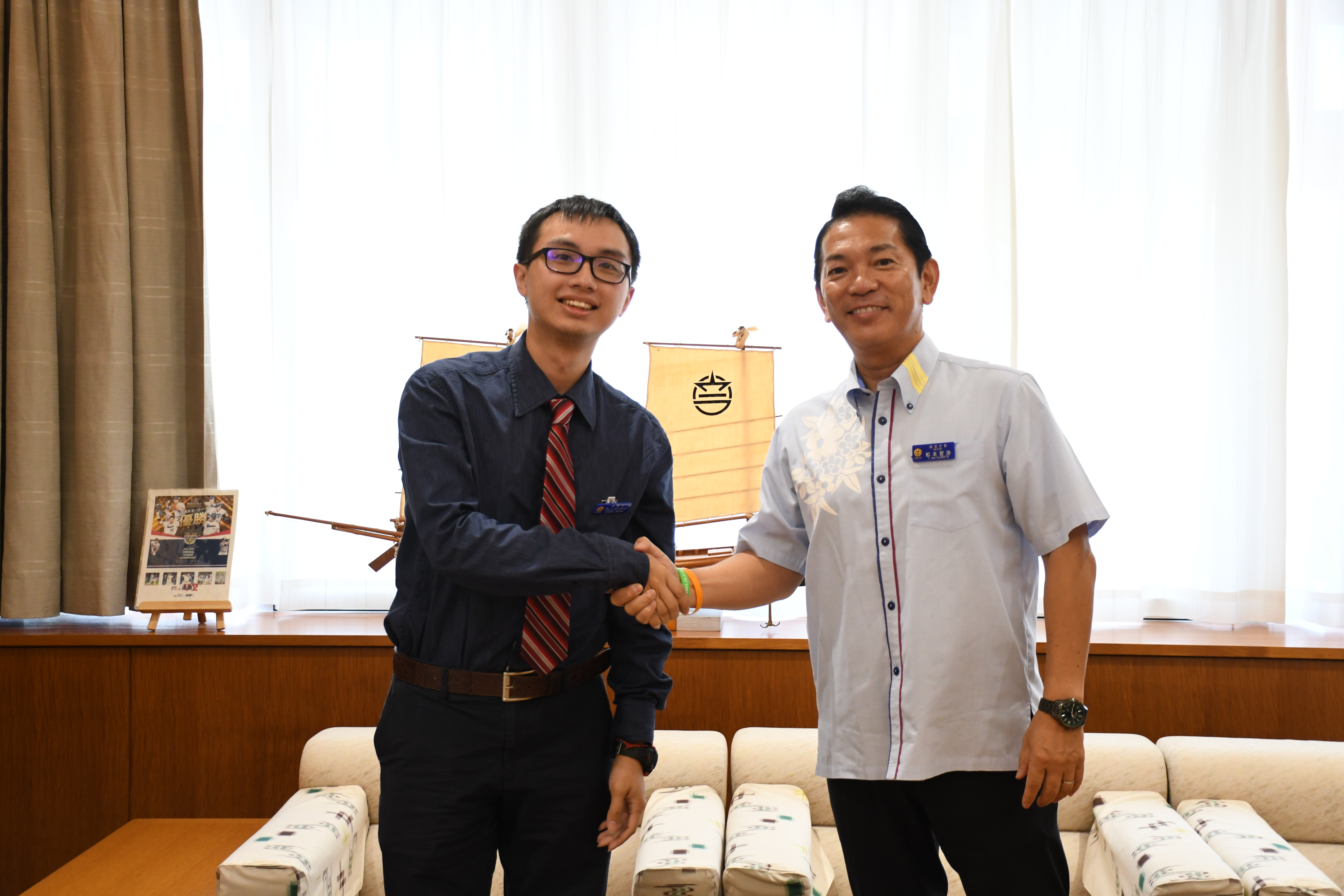そこから、和食やアニメや日本の旅行動画にはまって、最後は大学で日本語を学び、京都へ留学して、都道府県を11か所を回って、学士号を取って卒業してからすぐ浦添市国際交流課に来ています!