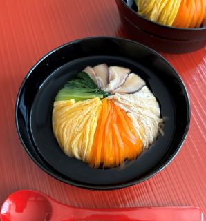 ⑦ 鍋に【かけ汁】の材料を入れ、沸騰したら味を調えて、⑥の器に上から優しくかけて完成。