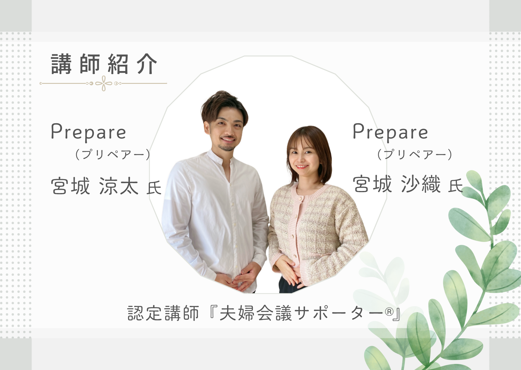 はじめまして! 講師のミヤギ夫婦です。