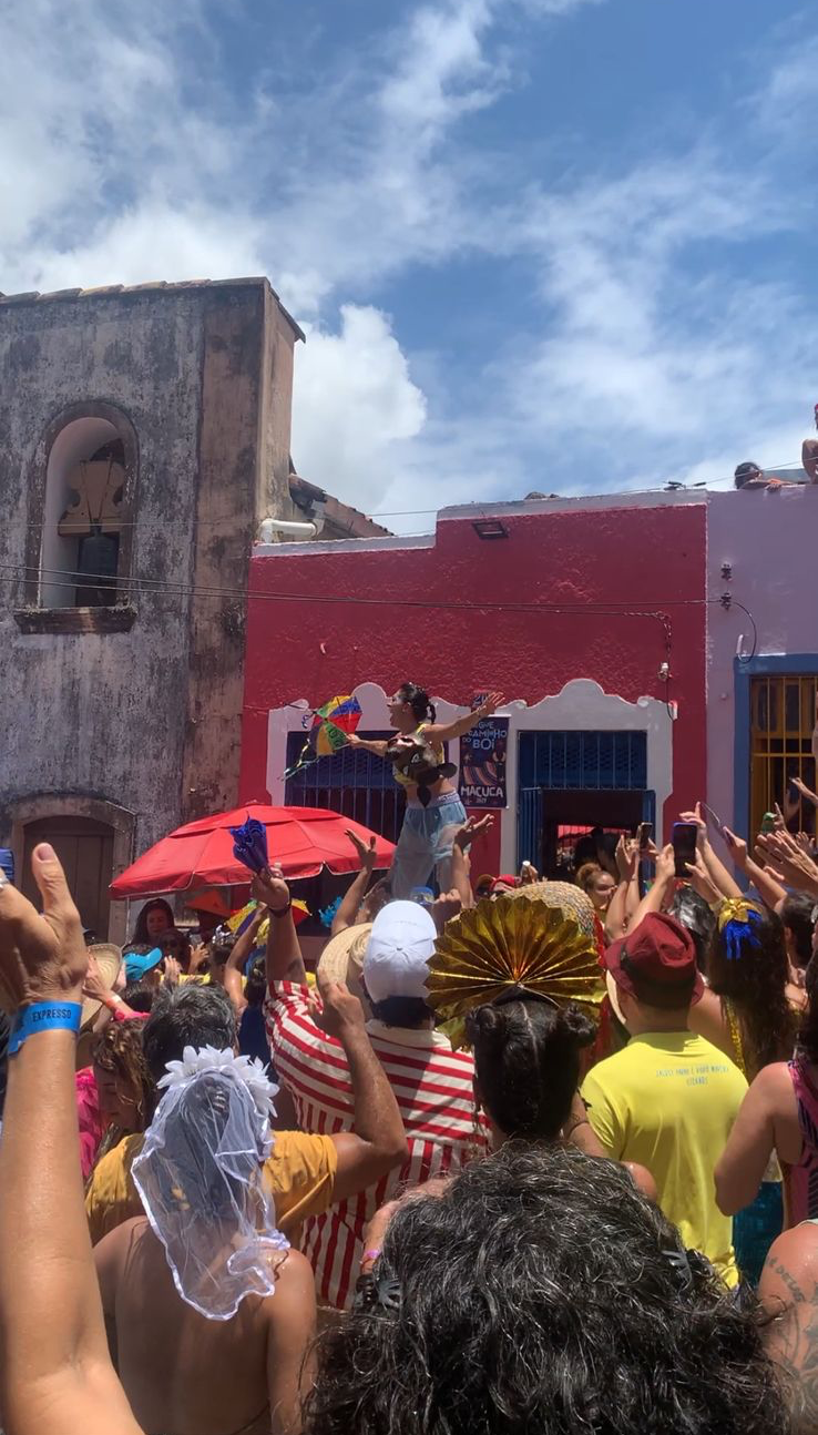 カーニバルは決まった日があるわけではなく、2月の終わりから3月の初めにかけて行われます。国内で最もお祭り騒ぎになる時期です。あまり好きではない人もいますが、大好きな人もたくさんいます。例年、私は友人たちとカーニバルを祝っていますが、今年は最も伝統的なカーニバルの街、オリンダに行くことにしました。オリンダはブラジルの北東部、ペルナンブーコ州にあります。カーニバルは土曜日に始まり、火曜日まで続きます。いろいろな祝い方がありますが、私のお気に入りはストリート・パーティーで、みんな仮装をして体にキラキラをつけて遊びに出かけます。オリンダのカーニバルはとても伝統的で、多くの地元の物語を伝えています。最も有名なカーニバルの一つなので、とても混雑しますが、体験する価値は十分にありました!