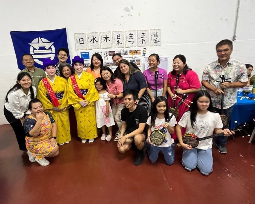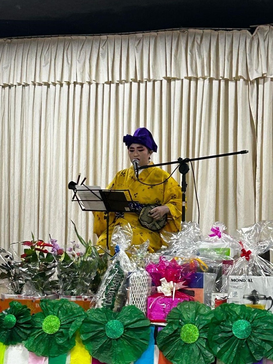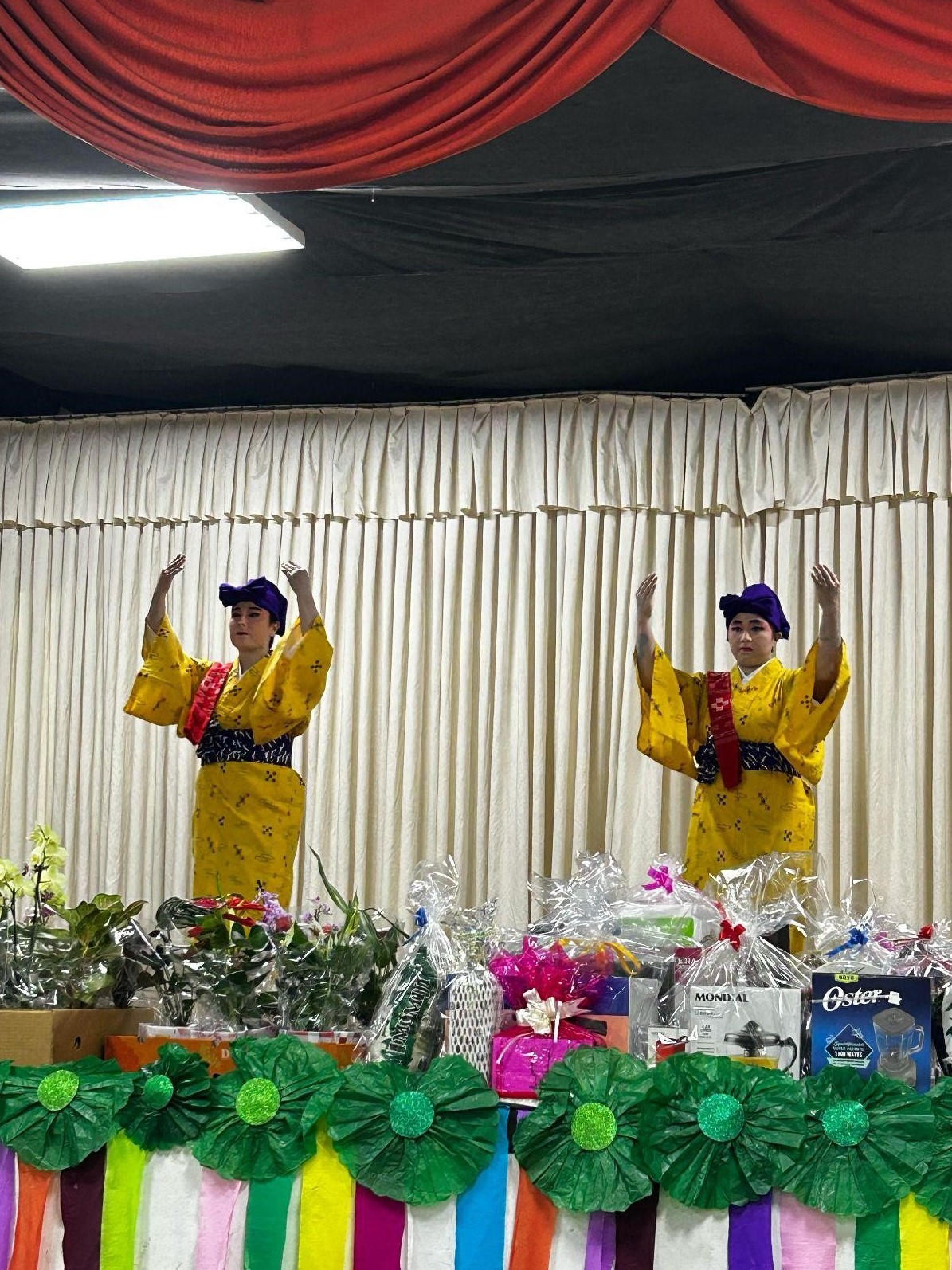 それから三線を弾き、「てぃんさぐぬ花」、そして「花」を弾くことにしました。どちらの曲も、その意味もとても気に入っています。プログラムは他の三線演奏、ビンゴ大会、スピーチ、そして新しい郷友会ボードの贈呈と続きました。私は感謝のスピーチをした後、ブラジルの曲を何曲か演奏した。沖縄で学んだことを、郷友会のみんなに、そして何よりも家族や友人に少しでも見せることができて嬉しかったです。また次の手紙で近況を報告します。ではまた!