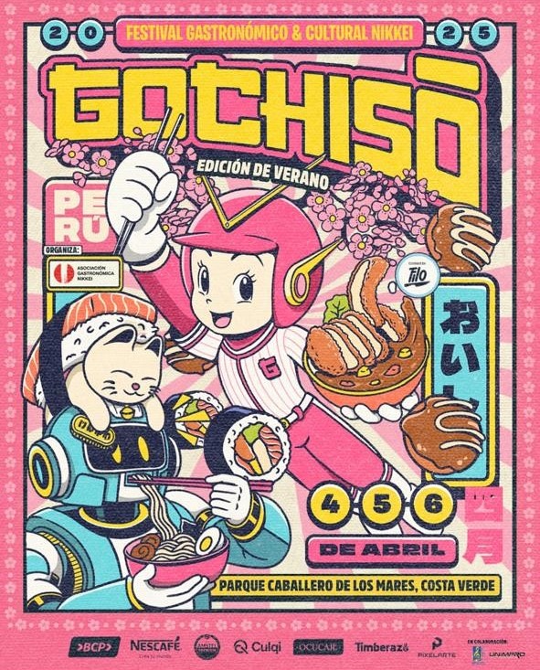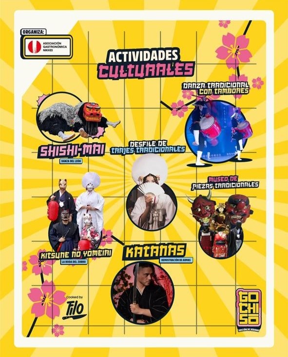 まず、GOCHISŌフェスティバルはリマで開催された、日系コミュニティのスモールビジネス(小企業の店)が集まる文化と食のイベントでした。ライブバンドの演奏がたくさんあり、エイサーのパフォーマンスもありました!ラーメン、餃子、おにぎり、巻き寿司、たい焼きなど、美味しいものをたくさん食べました。