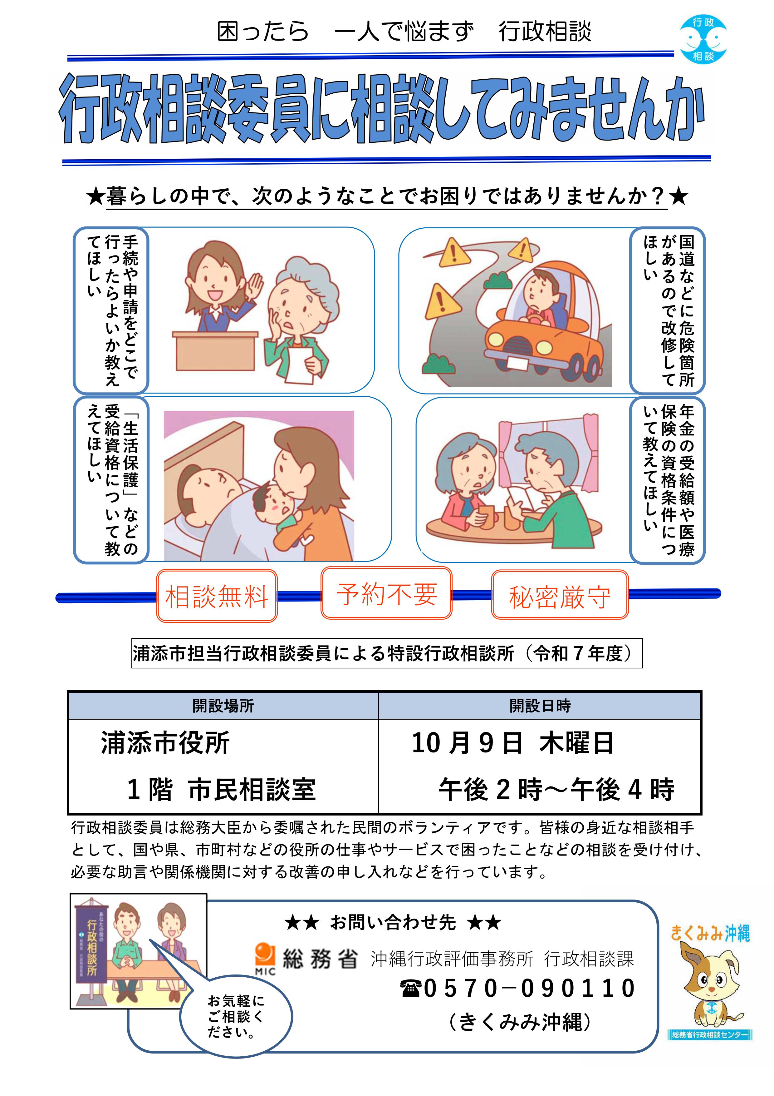 浦添市役所1階 市民相談室でも特設行政相談所を開設いたします!