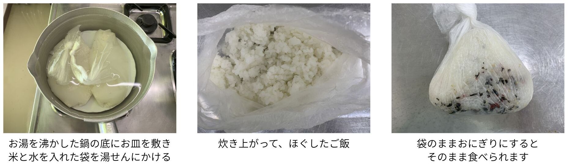パッククッキングでご飯を炊く方法を、簡単にご紹介します。