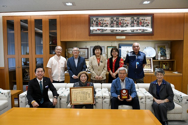 今回の表彰を受け、12月1日に浦添市老人クラブ連合会役員の皆様が市長を表敬し、受賞の報告を行いました。
