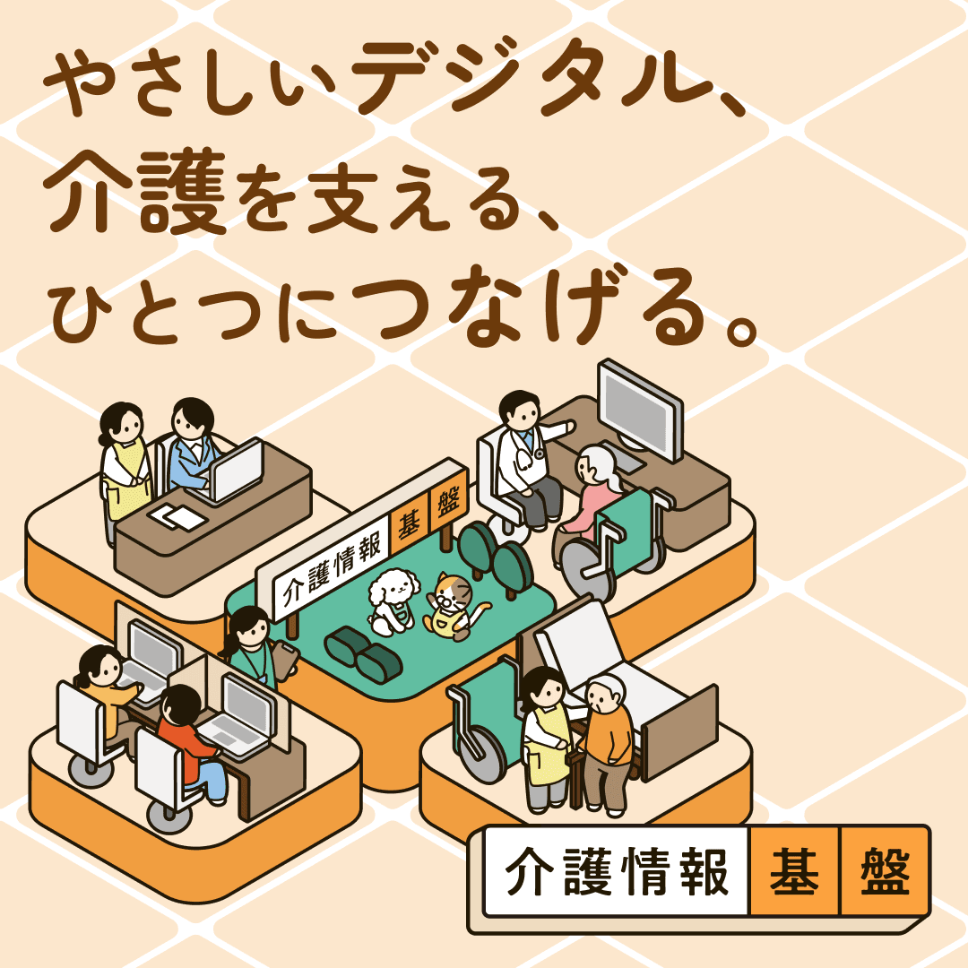 介護情報基盤とは、介護に関する情報等を関係者(利用者本人・市町村(保険者)・介護事業所・医療機関)が電子で共有、活用することで介護保険にかかる各種手続き等の利便性や介護サービスの質の向上を目指し、運用開始に向けた準備が進められている情報システムです。