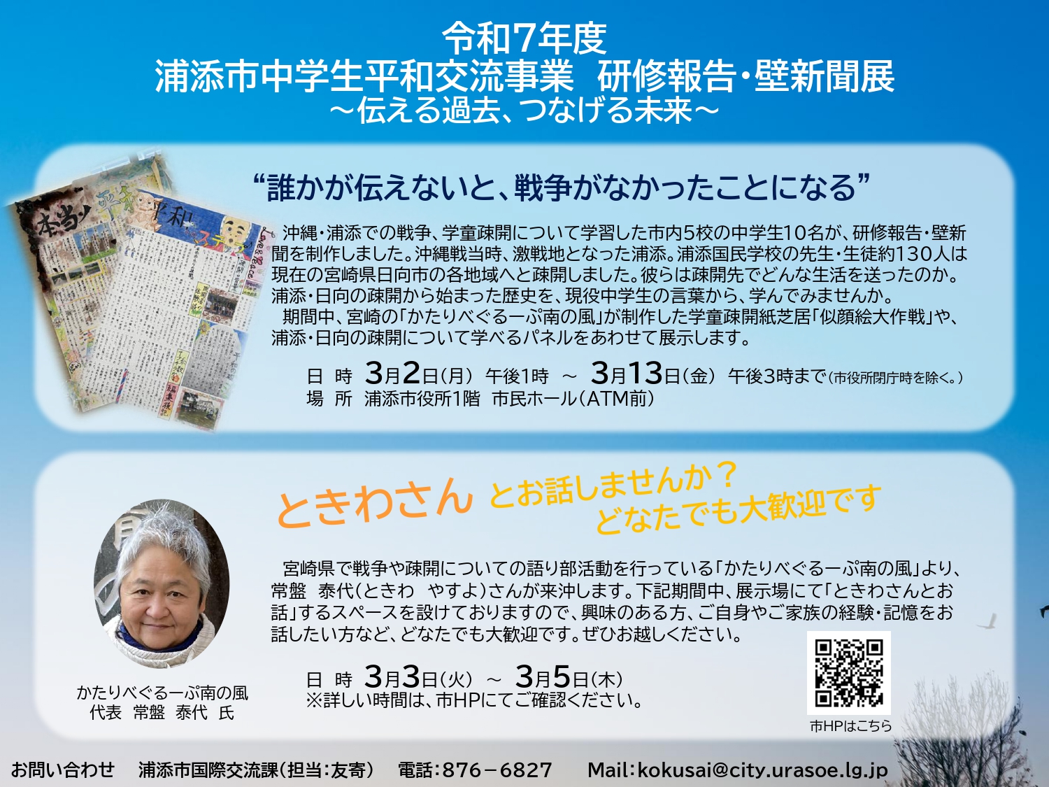令和7年度浦添市中学生平和交流事業 研修報告・壁新聞展のご案内