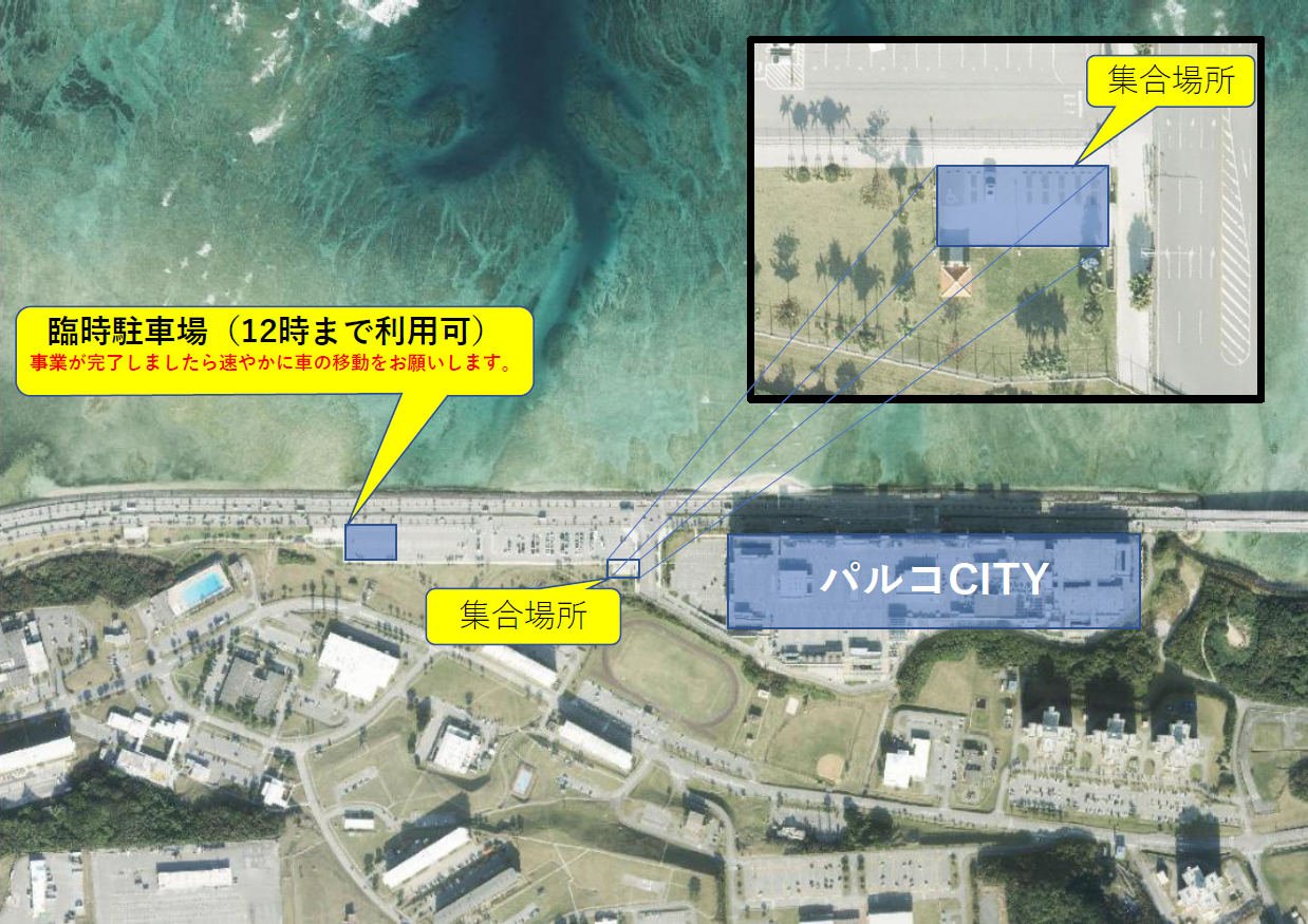 ※ 臨時駐車場(サンエーパルコシティ社員駐車場):12時までの利用となります。