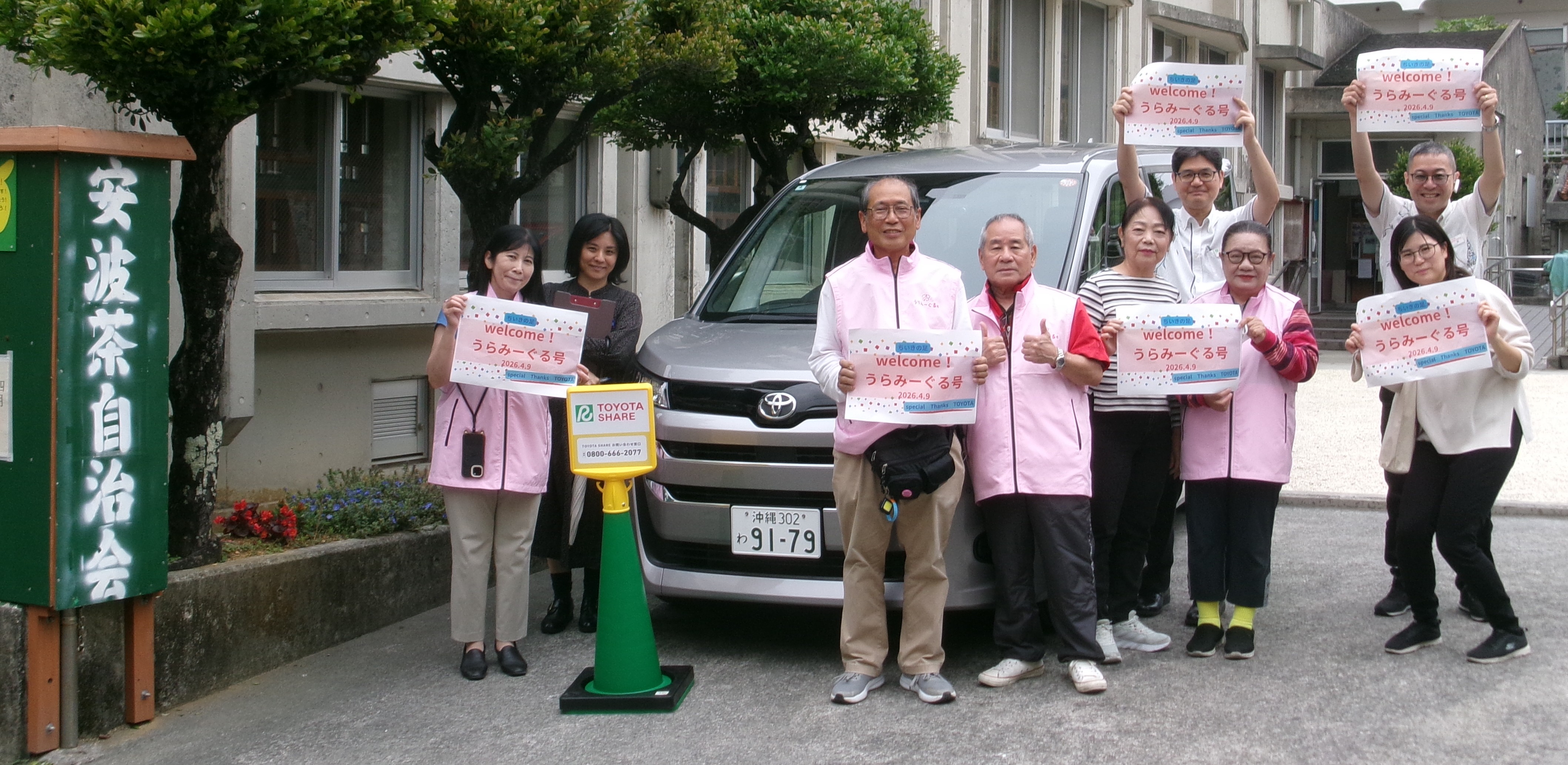 市内公園駐車場(3か所)に「トヨタカーシェアステーション」を設置し、その利用料金の一部を活用し無償で利用できる車両「うらみーぐる号(ちいきの足)」1台を安波茶自治会・茶山自治会での高齢者の送迎活動に使用しています。