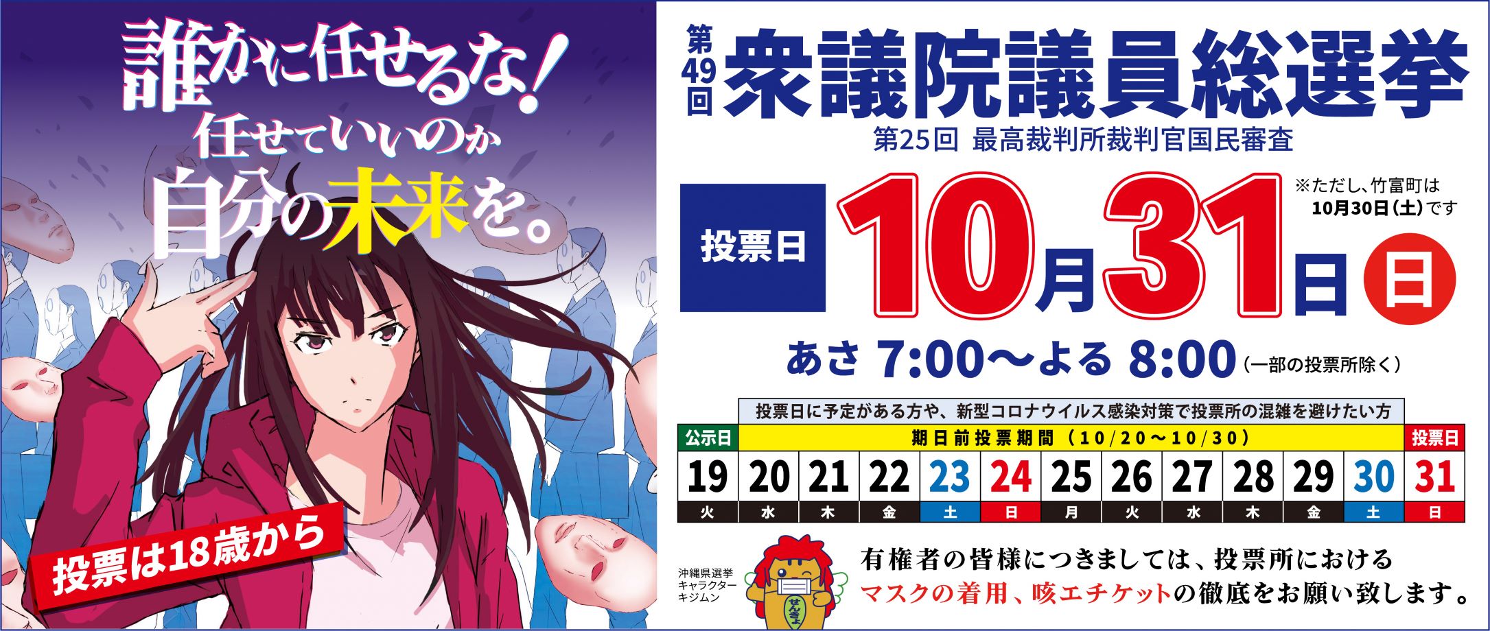 第49回衆議院議員総選挙及び第25回最高裁判所裁判官国民審査の投票日は 令和3年10月31日(日)です。