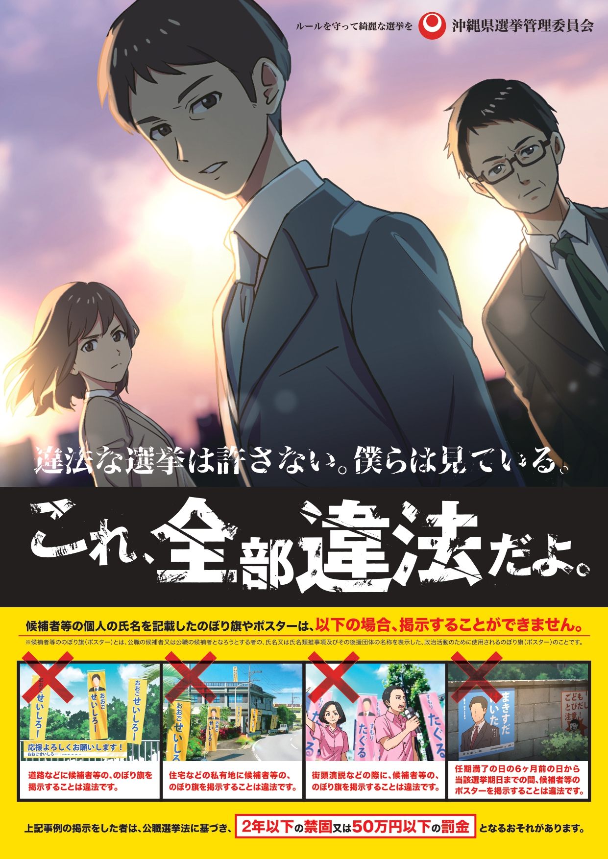 しかし、選挙が行われていないときであっても、候補者等の氏名や後援会の名称を書いた立札、看板やポスターが掲示されるなど、政治活動なのか選挙を目的とした選挙運動なのか、まぎらわしく判断しにくい状況から、公職選挙法においては、候補者等や後援団体の政治活動について、文書図画の掲示に関する制限を設けています。
