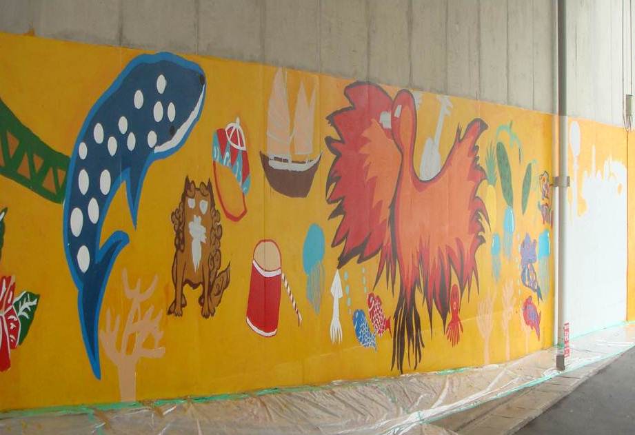 浦添市青少年健全育成市民会議 助成額 197,000円 茶山第2公園は市民の憩いの場であり、公園内の階段は児童生徒の通学路でもある。その階段の擁壁部分が見苦しく汚れている状況である。気持ちよく公園を利用してもらうため、汚れた擁壁部分の壁面に美化活動の一環として、子供達が自ら壁画制作を行い、明るい環境作りに寄与する素晴らしさを体験してもらいたい。 活動場所:茶山第2公園(通称:バナナ公園) |