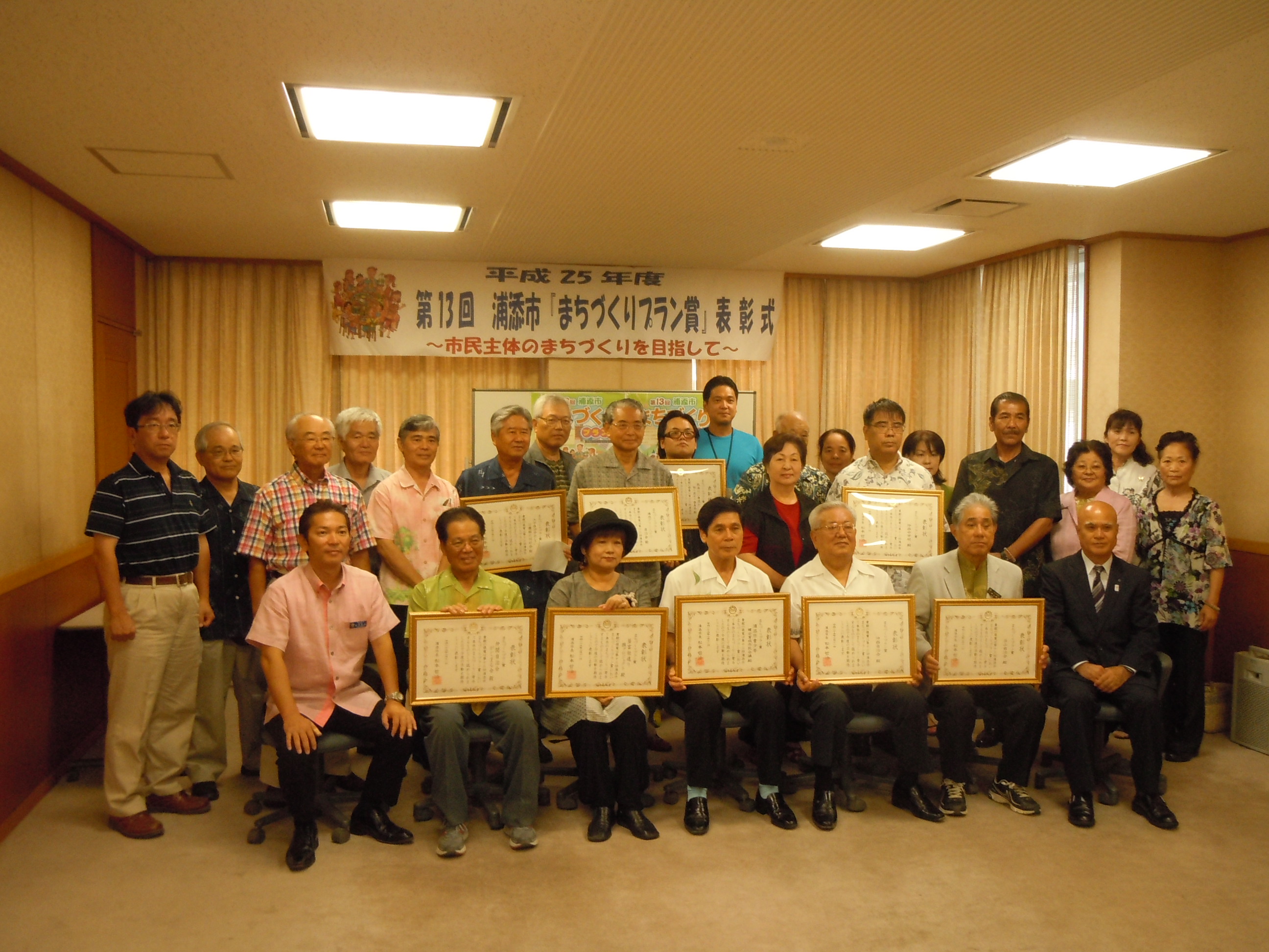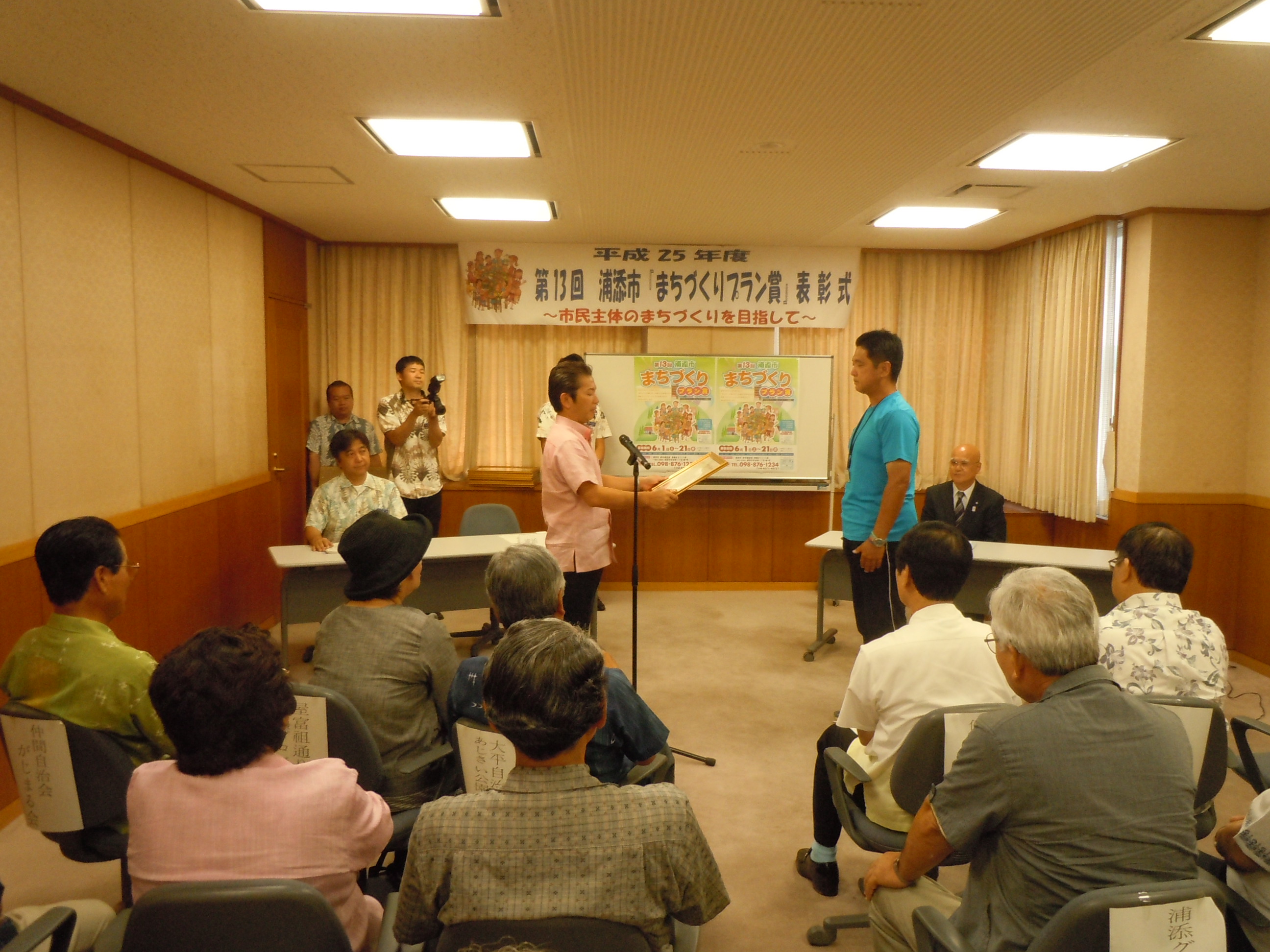 その後、7月11日(木)に、市役所4階企画調整会議室で「第13回浦添市まちづくりプラン賞」の表彰式が行われ、松本哲治市長より受賞団体に表彰の授与が行われました。