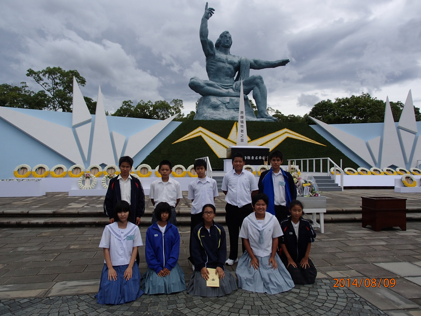 浦添市では、昭和61年に「平和都市宣言」、平成8年に「核兵器廃絶宣言」を制定し、平和に対する意識を更に高めるため、平成8年度から中学生平和交流団を県外へ派遣しています。今年度で19回目となる、この事業は、県内外での平和学習を通して、未来を担う中学生が戦争の悲惨さ、平和の尊さを学び、次世代へと伝えていくことを目的としています。 今年度も昨年度に引き続き、長崎市へ浦添市中学生平和交流団(11名)を派遣し、長崎原爆犠牲慰霊平和祈念式典の参列や青少年ピースフォーラムを通して原爆を実相を学ぶとともに、全国の平和交流団と交流しました。