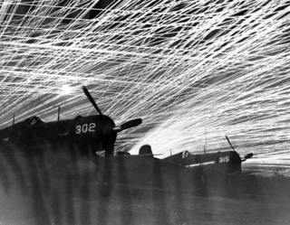 “鉄の暴風”と形容される米軍の猛攻を示す夜景。恐怖のどん底にありつつ、思わず見とれたという人もいる。