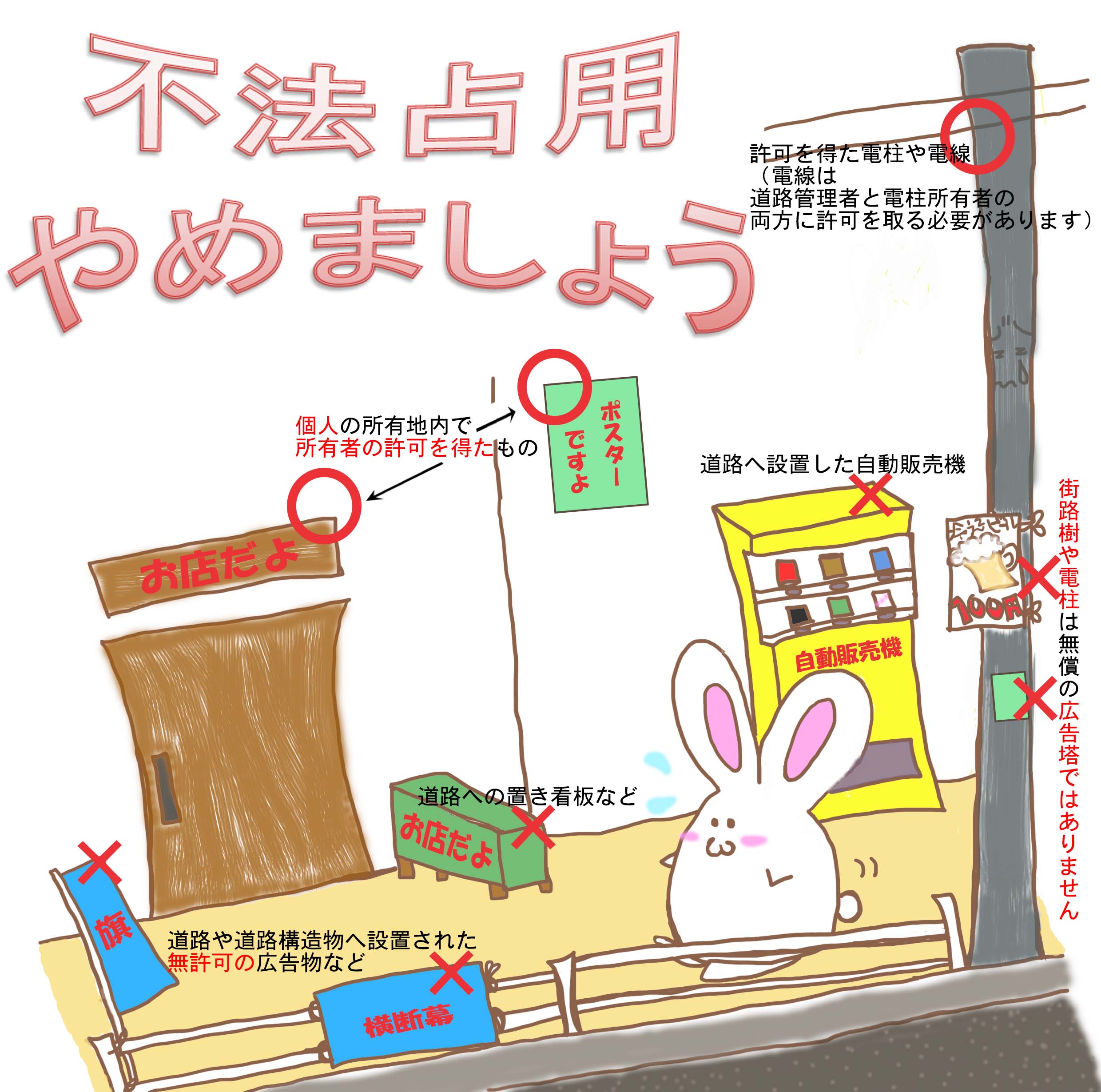 浦添市では、公共性の無い広告物等に対する占用許可は行っておりませんので御了承下さい。