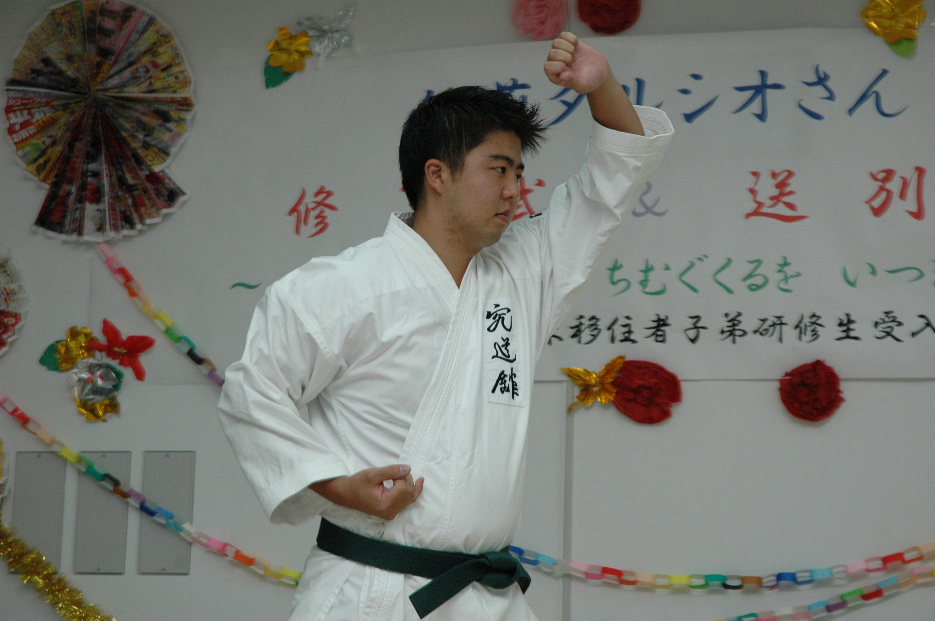 修了証書の授与と、半年間の研修の成果として空手などの発表をしました。