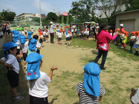 わくわくした気持ちで園庭に出て、みんなでお楽しみ会をしました!