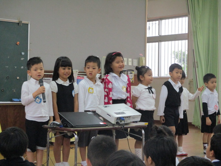 1月5日(金)3学期始業式がありました。各クラスの代表2名が全園児の前で3学期頑張りたいことを発表しました!緊張している様子でしたが、かっこよく発表することができました!