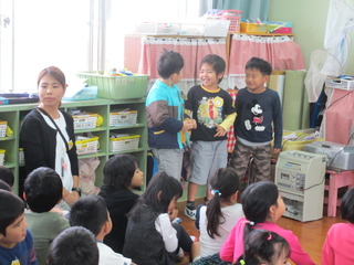 歌を歌ったり、先生の出し物「フィンガーアクション」を見たりして楽しかったです。