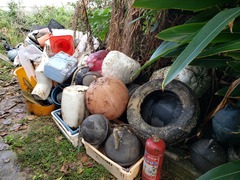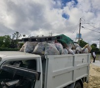 ゴミを回収していたのを皆さんで回収車に運び入れました。