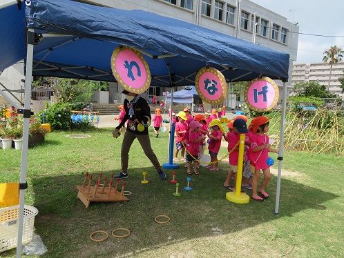 園庭に出ると、いろんなゲームコーナーが!!