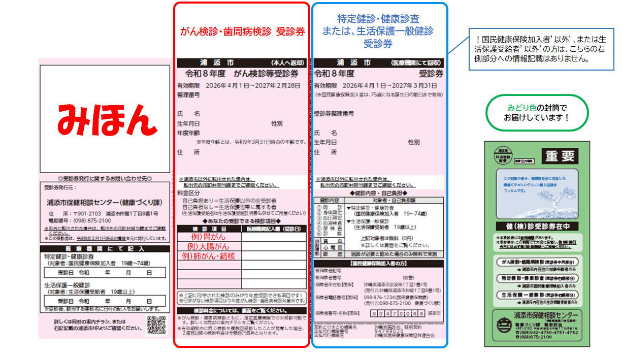 ※国民健康保険加入者、または生活保護受給者’以外’の方は、がん検診等受診券部分のみの利用となります。