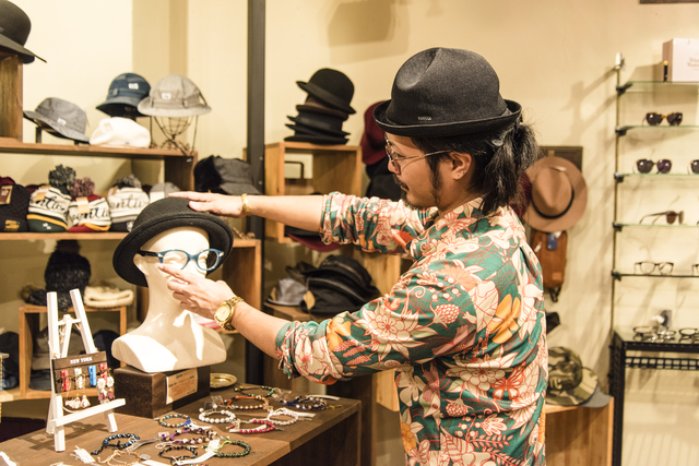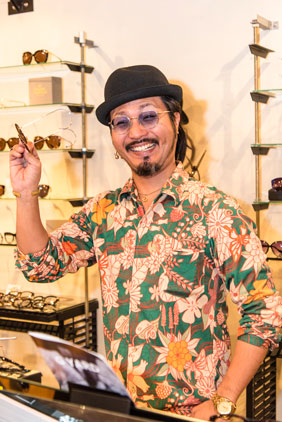 1983年、南大東島生まれの長田和樹さんは、高校進学を機に浦添市で暮らし始めました。西原高校卒業後は、那覇市に本社を置く「有限会社 東江メガネ店」に就職。3年ほど販売業務や新店開業などの経験を積みました。その後、全国各地でアイウェアのほか、アパレルや服飾雑貨販売などを手がけていた「株式会社ジンズ(JINS)」に転職。沖縄県内の大型商業施設で5店舗を次々と開業するなど成長を続けていたJINSで、約12年間にわたり新店の立ち上げや店長職などを歴任します。業界での経験を深めるなかで、自分が理想とする販売スタイルのイメージを膨らませてきた長田さん。JINSが業務をメガネ販売1本に絞ったのをきっかけに2015年に退職し、翌年11月に自身のショップ「GARDEN」を立ち上げました。