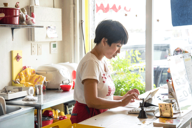 オープンから1年半。最近はようやくお店らしくなり、仲間と呼べるスタッフも入ってくれて、売上も安定してきました。両親が口うるさく言わなくなり、平穏な日々がもどってきたのがよかったな、なんて(笑)。まあ、でもお客さまから感謝の声が多いのが、飲食スペースをはじめて本当によかったと思うことですね。これまでインターネットでご購入いただいていた方が、沖縄に来た時に食事に寄ってくださるなんてこともあります。お客さまの「おいしい!」という顔が直接みられるのが飲食店の楽しさ。もっともっと繁盛店にして、早く両親をラクにさせてあげたいです。
