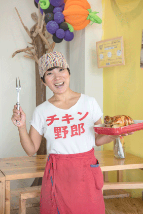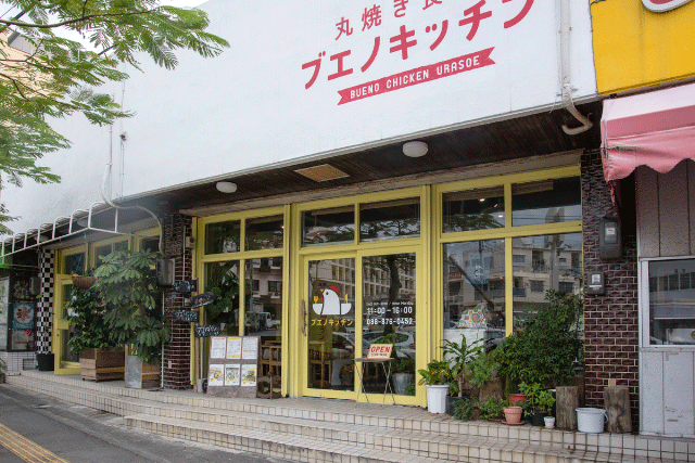 浦添市でチキンの丸焼き専門店「ブエノチキン 浦添」を営む両親の一人娘として生まれた浅野ブエコ朝子さん。2004年から県内大手広告代理店でコピーライターとして活躍していましたが、「他の会社の広告を作るより両親の店の広告が作りたい」と家業を継ぐことに。2014年にご主人が起業したことにも刺激され、翌年4月に新たな試みとしてチキンのイートインスペース「ブエノキッチン」をオープンしました。両親の反対や開業準備中の妊娠などの紆余曲折をへて、1年半後にはお店も順調に。二代目なりの店舗づくりに、家事に子育てにと、ブエコさんの挑戦は続いています。