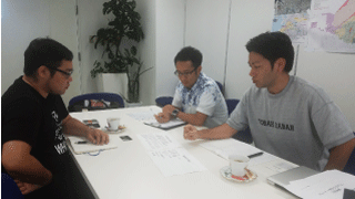 創業フェスタに向けての勉強会では、出展企画について目的や概要をまとめ、他出展者(支援対象者)との意見交換会に参加し、内容についてのブラッシュアップを行った。また、リーフレットの作成にも着手し、ロゴの作成や記載事項(事業目的)、ターゲットや配布方法などデザイナーを交えての打ち合わせを行った。