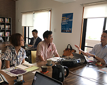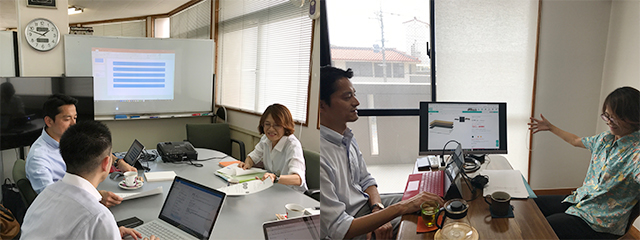 7月の開業に向けて、具体的な準備を進めている下地さんへ、ロゴやパンフレットの制作、内装についてのアドバイスを行いました。