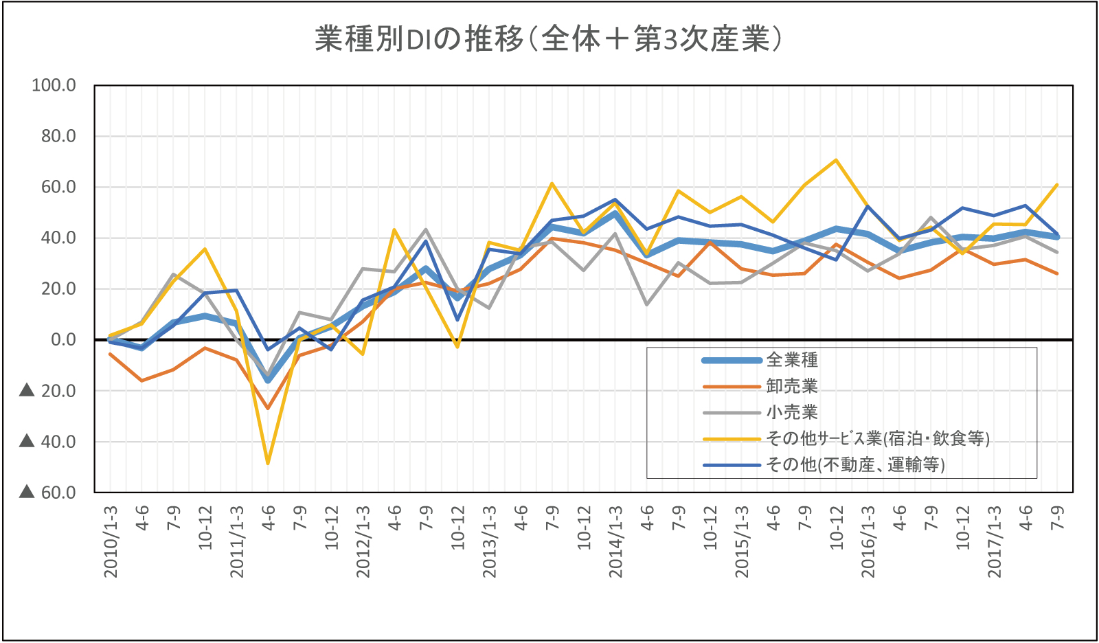 近年の流れを踏まえて、2018年の見通しを整理してみると総じて比較的安定的な海外・国内経済成長を背景にし、個人消費や建設関連が概ね堅調に推移、観光関連での好調さが継続することで、全体として拡大基調が続くことが予想されます。