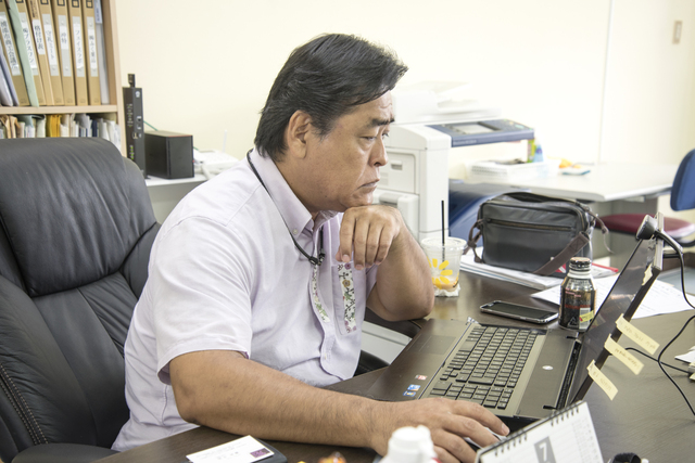 沖縄県宮古島市で生まれ、浦添市で育った長崎さんは、産業廃棄物をあつかう会社でサラリーマンとして働いていました。もともといつかは起業したいという思いを持っていた長崎さんですが、44才の時に意を決して個人事業主として独立。現在は浦添市安波茶にオフィスを構えています。県内の農家に委託して生産しているブランド豚「甘熟島豚」の卸販売のほか、とある出会いがきっかけで、ラードを使った化粧品の製造販売にも着手しています。そんな長崎さんの起業の経緯についてお話をうかがいました。