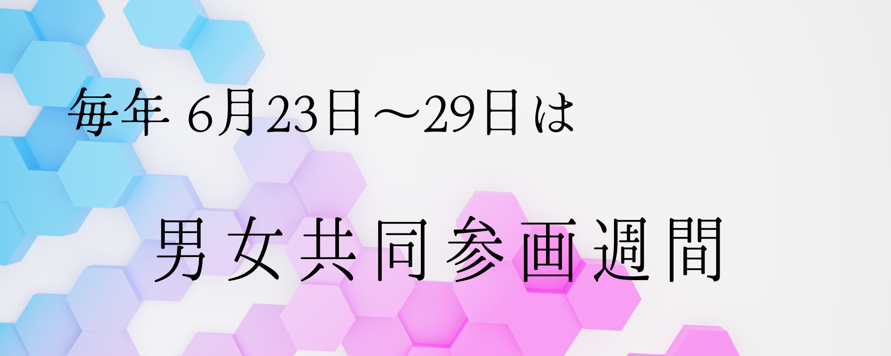 男女共同参画社会基本法の公布・施行日である6月23日からの1週間は、内閣府が主唱する「男女共同参画週間」です。