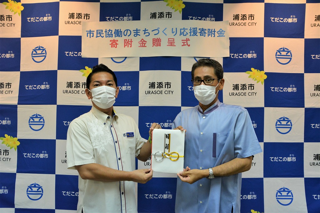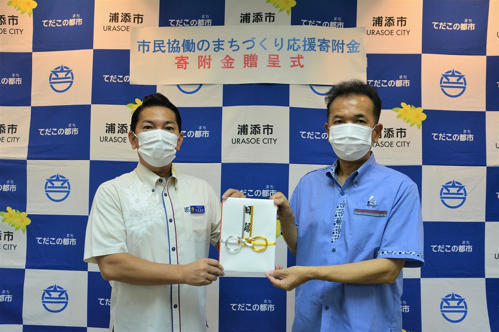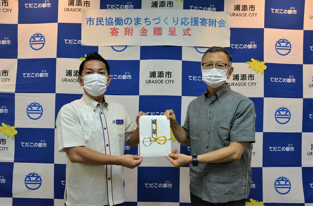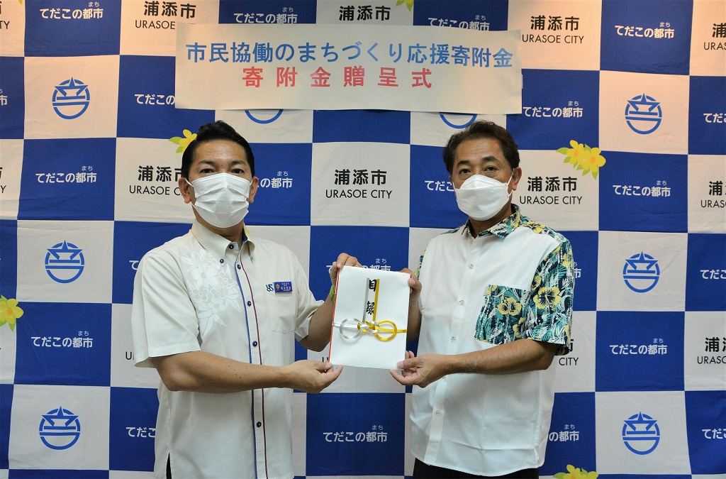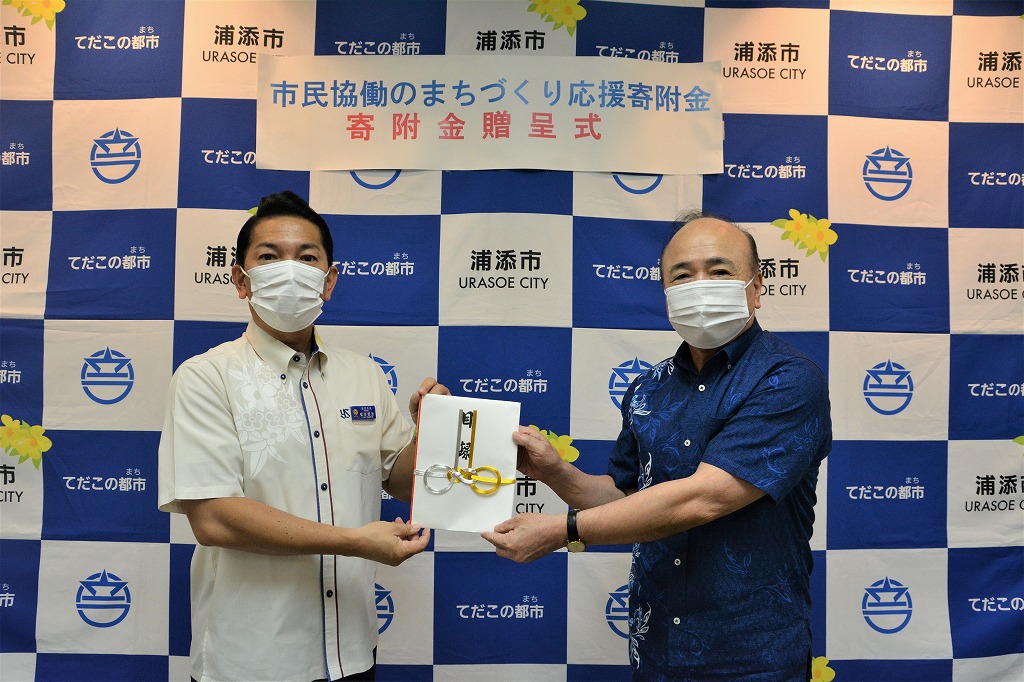 7月29日(金)、浦添市役所にて寄附金贈呈式を行いました。