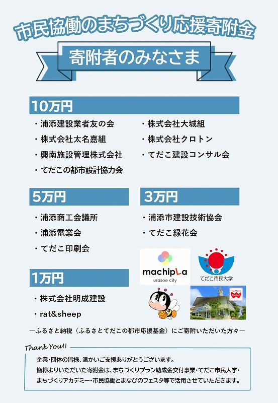 以上のほか、浦添市建設技術協会、てだこ緑花会、株式会社明成建設、rat&sheepからご寄附を賜りました。