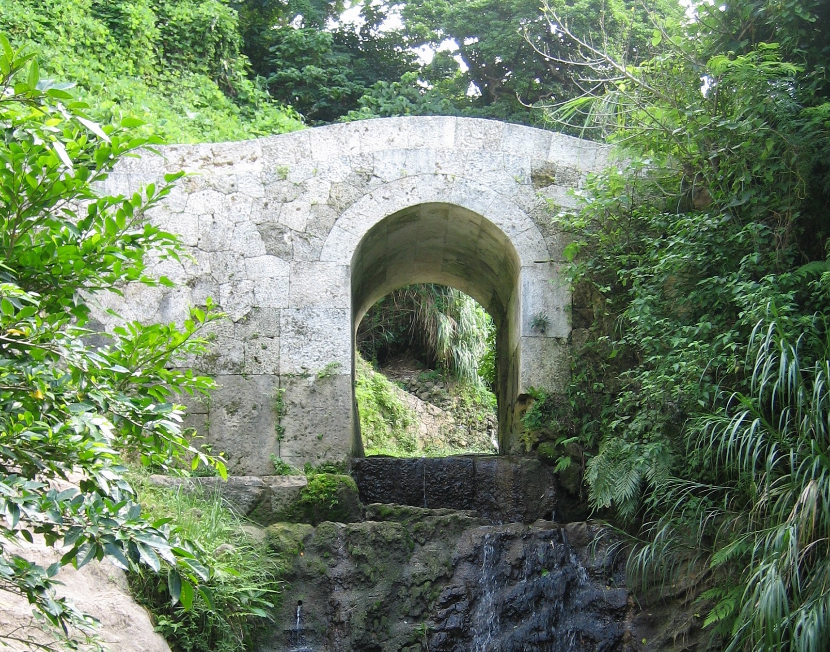 小湾川上流に架かる二つの石橋(北橋と南橋)が安波茶橋です。首里城から浦添グスクまでの道を整備した1597年頃には存在していたと考えられています。しかし、発掘調査で見つかった出土遺物や橋の造り方から判断すると、北橋は18~19世紀、南橋は明治以降の架橋が明らかになりました。経年とともに橋の修理や架け替えがあった可能性があります。