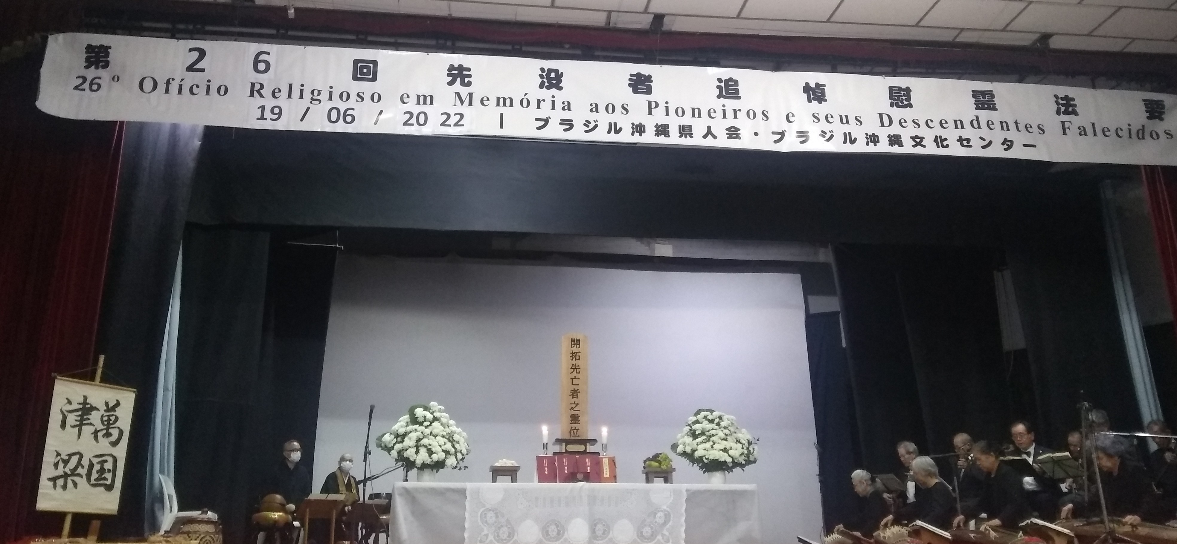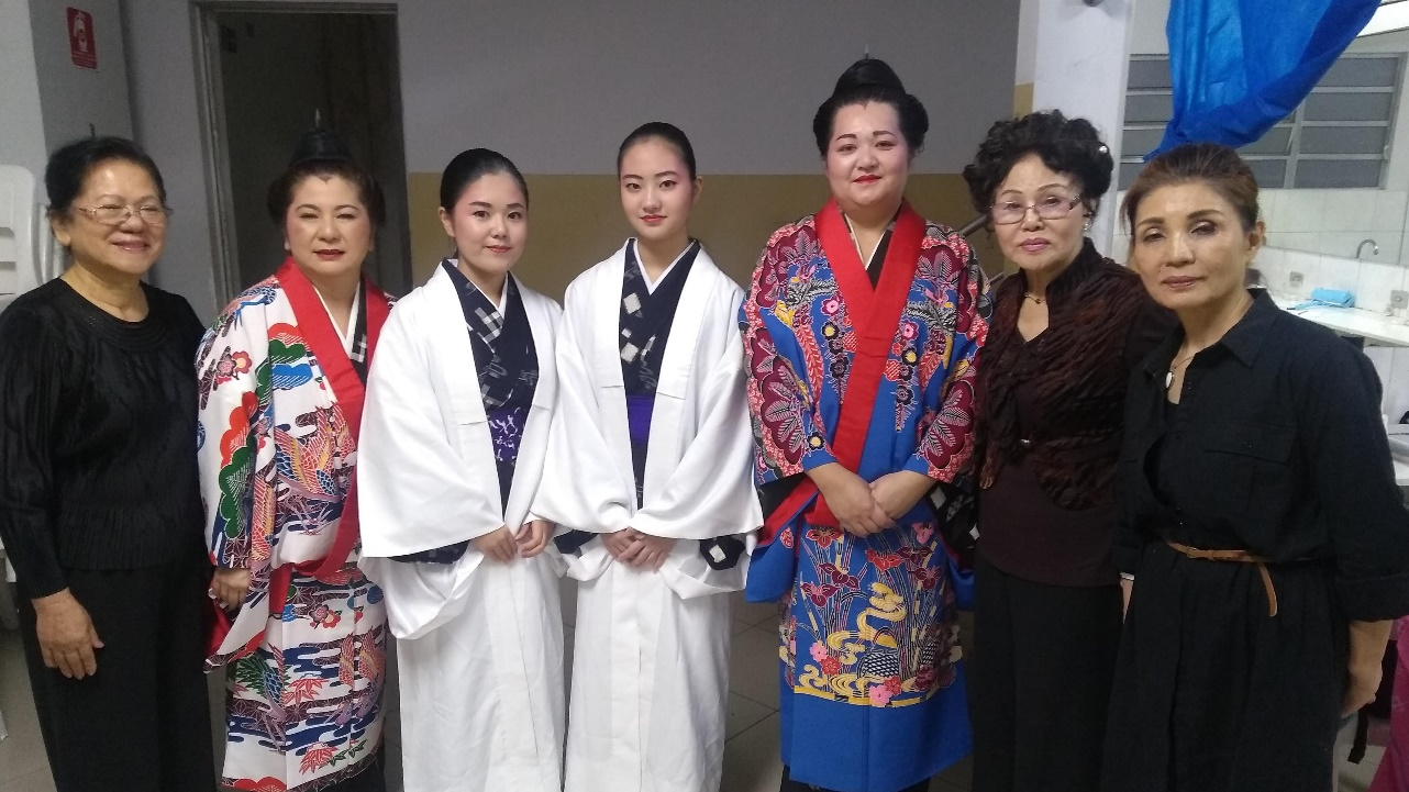 Aqui no Brasil, eu e a Massami Yoneta quetambém foi bolsista de Urasoe realizamos a cerimônia do Buku buku Chá. Todoano, participamos no Ireisai promovido pelo Okinawa kenjinkai e no Okinawafestival também realizamos workshops.