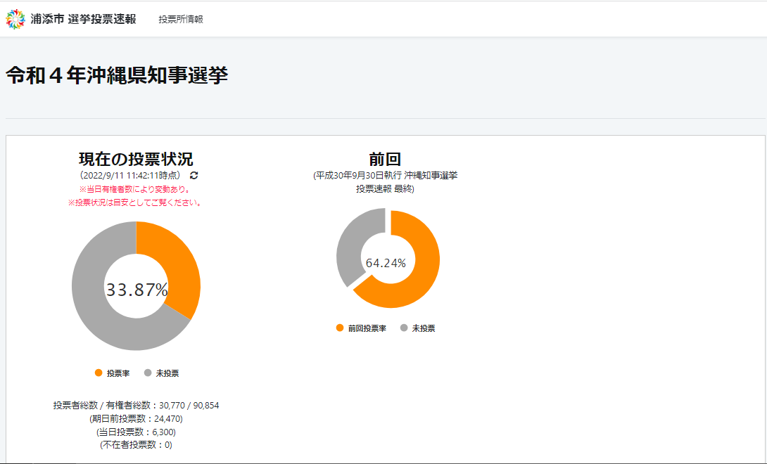 浦添市選挙投票速報サイト(※PC、スマホ等マルチデバイス対応)