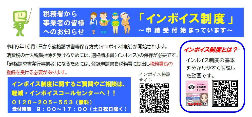 令和5年10月1日から適格請求書等保存方式(インボイス制度)が開始されます。