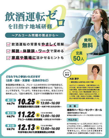 飲酒運転ゼロを目指す地域研修 ~アルコール問題の視点から~ ※終了しました