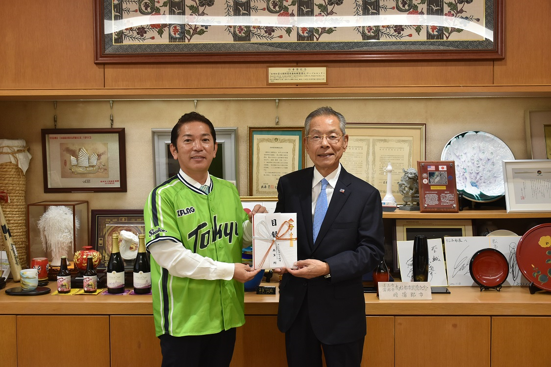 この度、株式会社ヤクルト球団 様(代表取締役社長 衣笠剛 様)より、100万円のご寄付をいただきました。