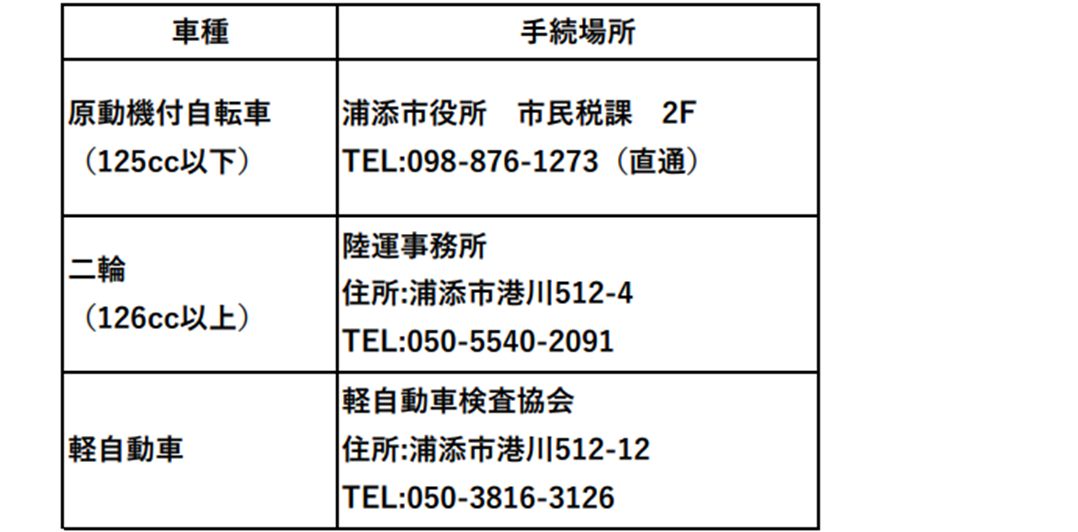 車種によって、手続きをする場所が異なります。ご注意ください。