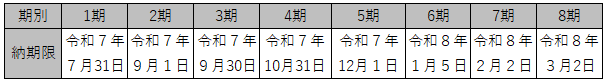 令和7年度の国民健康保険税の納期限は次の表のとおりです。