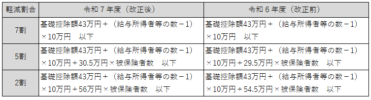 世帯に属する国保加入者等(世帯主・旧国保被保険者含む)の総所得の合計額が一定の基準金額以下の場合、均等割と平等割が(7・5・2割)軽減されます。