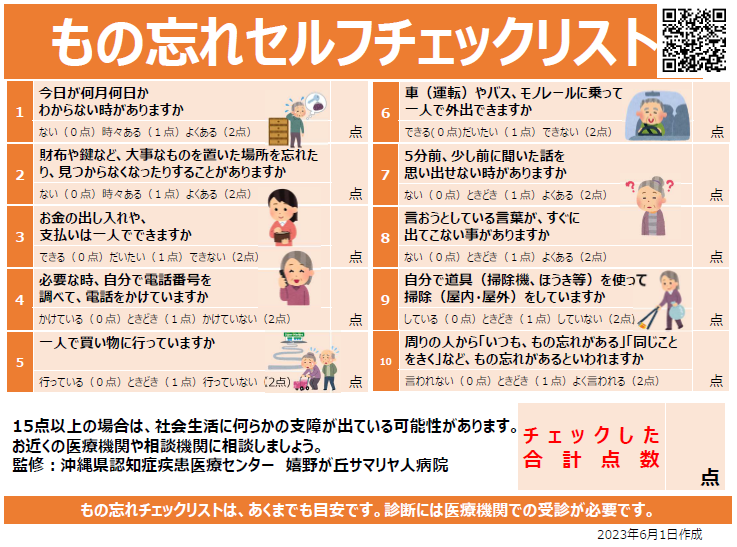 もの忘れセルフチェックリストは、あくまでも目安です。診断には医療機関での受診が必要です。