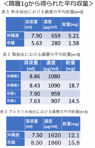 ①セリシン総量の結果より、沖縄産、市販繭層において、抽出法による大きな差はない。